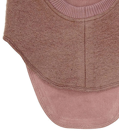La cagoule Huttelihut a un extérieur en laine mérinos et polyester et un côté intérieur en velours doux.