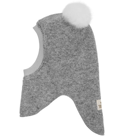 Élégante Huttelihut Huttelihut gris chiné, ornée de deux pompon en douce fourrure d'alpaga. Composée de deux épaisseurs, cagoule épouse la forme de la tour. Son bord côtelé au niveau du visage assure un ajustement optimal.