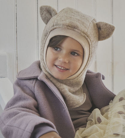 Huttelihut Huttelihut en cagoule polaire chaude, beige chiné. Composée de deux épaisseurs, elle présente une forme tour, rehaussée de jolies oreilles.