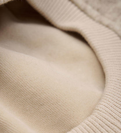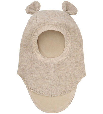 Élégante cagoule Huttelihut en polaire de laine chaude, d'un beige clair chiné. Huttelihut présente une forme tour et est ornée de deux oreilles. Composée de deux épaisseurs, Cagoule est dotée d'un smart bord côtelé au niveau du visage.