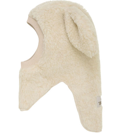 Ravissante cagoule Huttelihut en polaire pilou couleur crème. Huttelihut présente une forme tour, de longues oreilles de lapin et un bord côtelé autour du visage. Cagoule est composée de deux épaisseurs pour plus de chaleur.