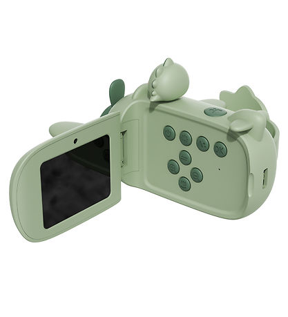 Nice The Zoofamily de la Zoo Video, conçue pour ressembler à un avion dans un design de dinosaure vert. Une feuille d'autocollants est incluse afin que le caméscope puisse être décoré dans un style personnel.