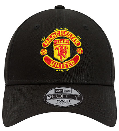 casquette New Era cool en noir, et sur le devant il y a une étiquette avec le logo Manchester United.