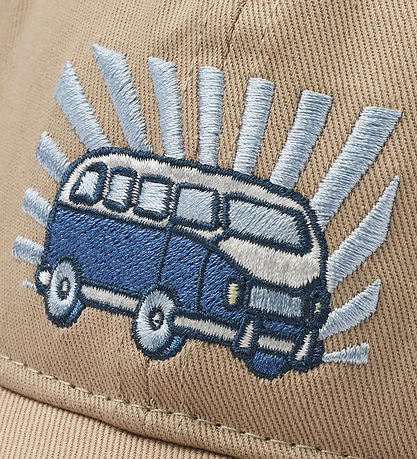 Jolie casquette Wheat de couleur beige avec un joli imprimé voiture dans les tons bleus sur le devant. La Casquette est conçue avec des détails qui offrent un look élégant et un bon ajustement pour les enfants.