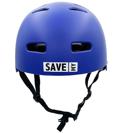 casque de vélo Smart Save My Brain en bleu foncé avec logo blanc imprimé à doublure et à l'arrière.