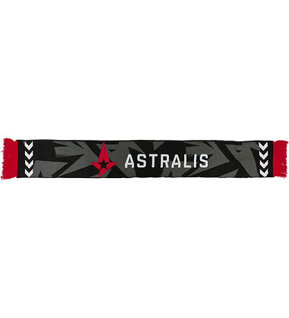 Écharpe Smart Hummel en noir et gris avec un logo "Astralis" blanc au milieu, ainsi que des logos Astralis rouges et blancs et les chevrons Hummel caractéristiques en blanc, de chaque côté.