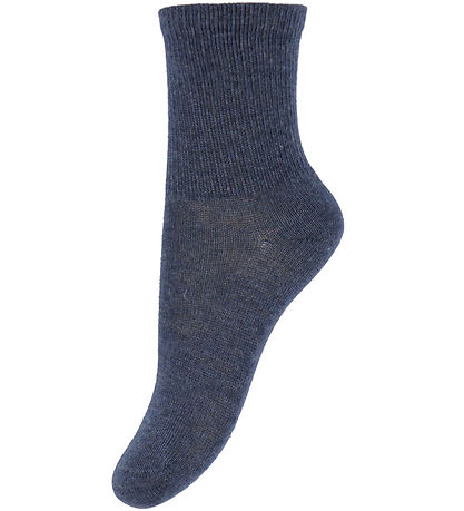 Belles chaussettes Minymo en bleu foncé chiné vendues en 2 Pack. Les Chaussettes ont une manche de longueur régulière avec un bord côtelé étroit sur le dessus, ce qui assure un bon ajustement.