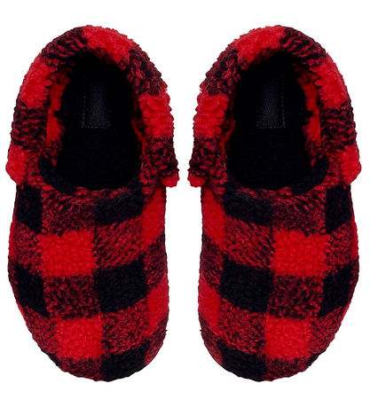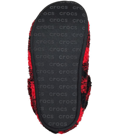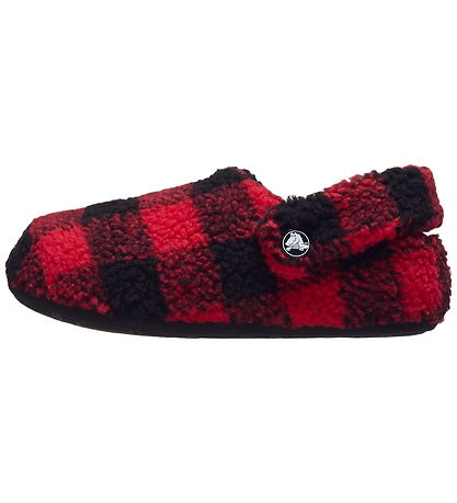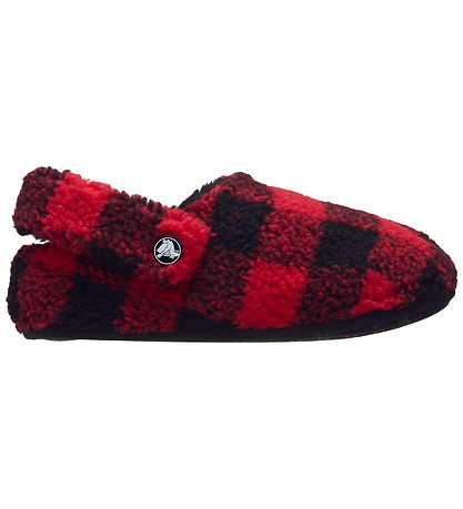 Superbes chaussons Crocs avec un motif classique à carreaux en plys rouge et noire.