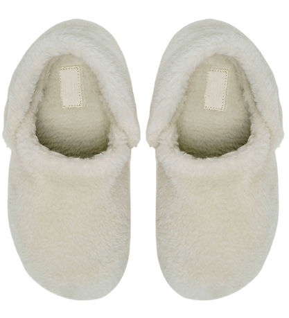 Jolies pantoufles Crocs en plys douce blanc crème.