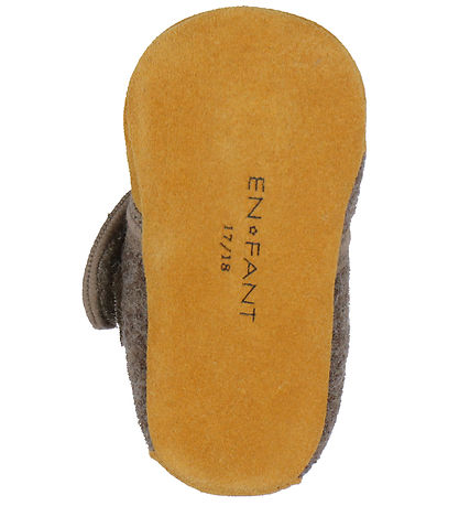 les chaussons En Fant se ferment grâce à une large bride velcro sur le pied, ce qui permet de les enfiler et de les retirer rapidement. Les chaussons semelle extérieure en daim assure un bon maintien.