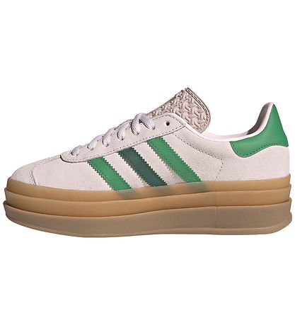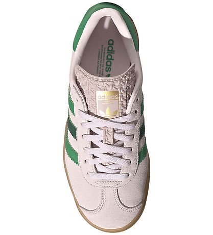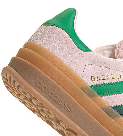 Élégantes chaussures adidas Originals en daim rose, ornées de logo à rayures vertes sur les côtés et d'un détail vert au talon. adidas Performance sont dotées de À lacets sur le cou-de-pied. L'intérieur est en faux cuir rose et comporte des semelles intérieures amovibles. La semelle extérieure marron robuste présente un motif rugueux sous la semelle pour un bon maintien.