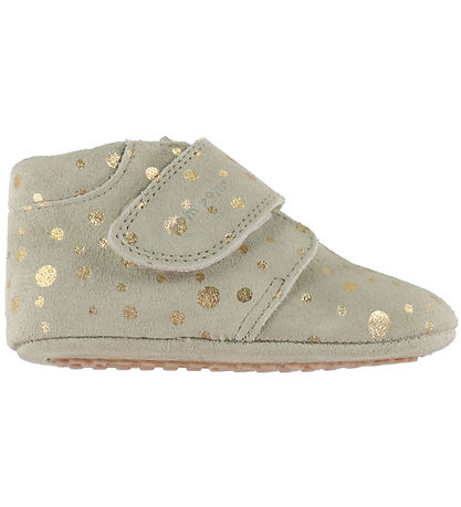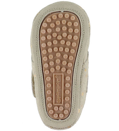 La semelle extérieure est en caoutchouc et sous la semelle se trouvent de petits boutons qui assurent un bon maintien du pied au petit enfant, qui n'est peut-être pas encore aussi sûr de ses pieds.