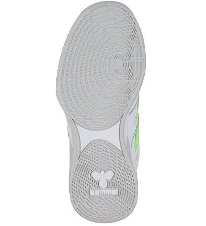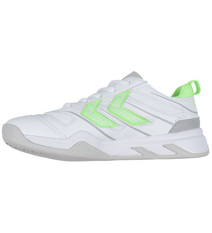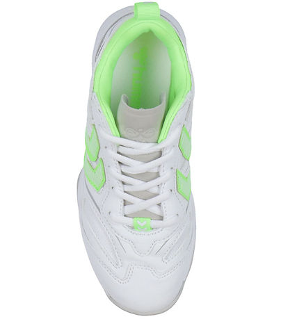 chaussures Hummel cool en textile et faux cuir cuir blanc avec détails et attaches vert fluo et gris..