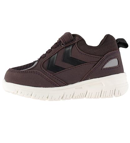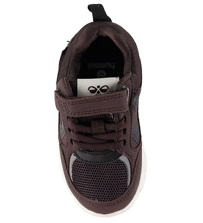 Jolies chaussures Hummel en mesh violette et faux cuir. À À l'intérieur et à l'extérieur se trouvent les chevrons caractéristiques de Hummel en noir. Sur le talon se trouve une poignée noire et sur la languette un logo Hummel blanc et violet. Les chaussures ont des détails réfléchissants sur le talon et les orteils.