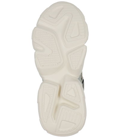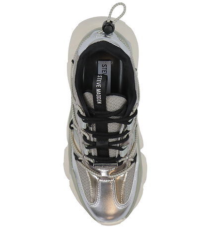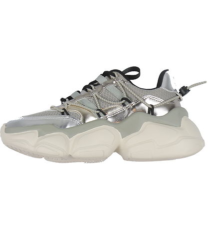 chaussures cool Steve Madden en mesh beige avec détails argentés et gris en faux cuir et textile.