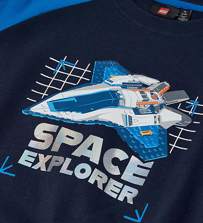 Magnifique sweat-shirt LEGO® Wear city bleu, orné d'un imprimé Space Explorer original et d'un texte argenté sur le devant. L'intérieur est en coton brossé doux.