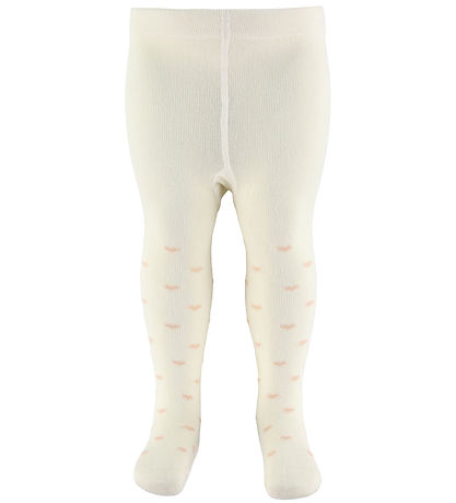Jolis collants Lil' Atelier blancs avec un imprimé intégral de petits cœurs roses. Collants structure tricotée confortable et leur taille élastique assurent un bon maintien.