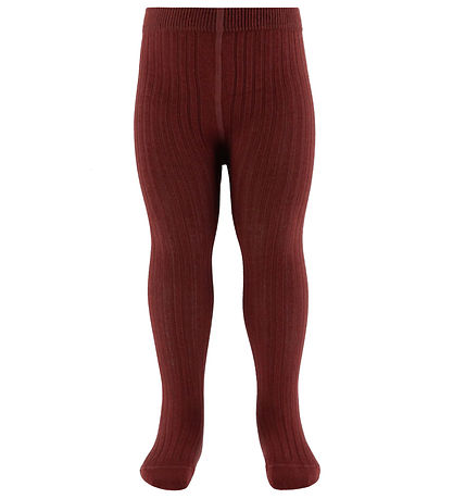 Collants élégants Lil' Atelier rouge foncé à structure côtelée. Collants d'une taille élastique confortable et d'une coupe ajustée.