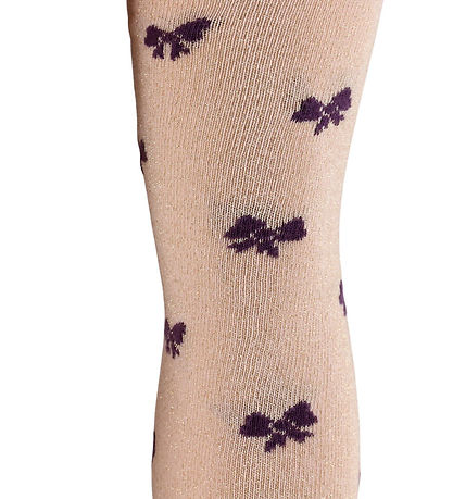 Jolis collants Melton roses à brillant et nœuds violets. Collants taille élastique assure un bon maintien.