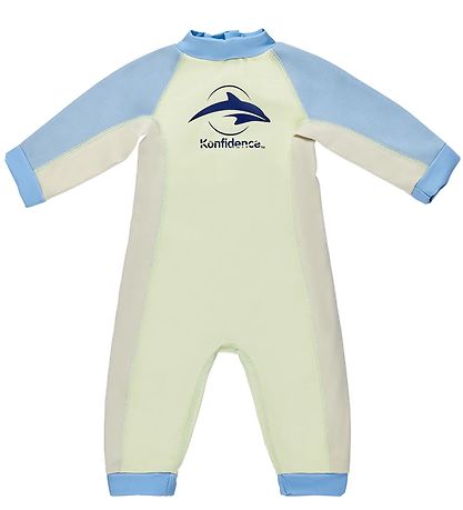 Le maillot de bain Konfidence a des manches et des jambes longues. La combinaison s'ouvre avec un bouton-poussoir et une fermeture éclair avec un éolienne interne et externe au niveau du cou. Toutes les ouvertures ont des bords larges et le maillot de bain est de bonne qualité et épais pour que l'enfant ne prenne pas froid. À l'intérieur se trouve une doublure en peluche douce pour plus de confort.