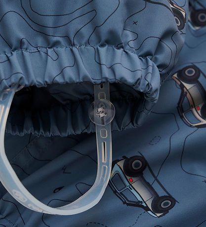 combinaison de ski Lovely Color Kids en vieux bleu avec un imprimé intégral avec des voitures.