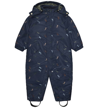 Superbe combinaison de ski Hust and Claire bleu marine, ornée d'un imprimé lézards aux couleurs douces. Combinaison de ski est dotée de passepoils réfléchissants pratiques.