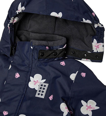 combinaison de ski Smart LEGO® Duplo en bleu marine avec un imprimé intégral de rose fleurs.