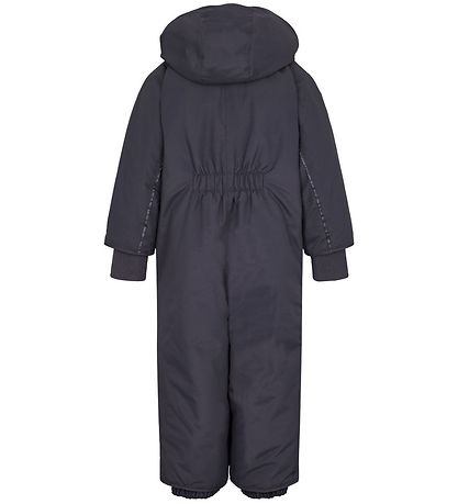 La combinaison de ski MarMar a une capuche amovible qui se ferme avec à boutons poussoirs le long du col haut avec des bords-côtes. L'ouverture du visage de la capuche peut être fermée par à boutons poussoirs en bas et est élastique en haut du bord. La Combinaison de ski s'ouvre sur le devant au moyen d'une fermeture éclair avec protège-menton et double éolienne, dont celle extérieure se ferme par à boutons poussoirs. Au dos il y a un large élastique qui donne un bon ajustement.