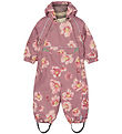 Magnifique combinaison de ski Petit Piao rose ornée d'un imprimé d'anémones d'automne. Combinaison de ski est dotée de passepoils réfléchissants pratiques et d'un logo brodé sur le devant.
