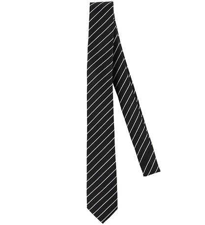 Belle cravate Grunt noir avec a rayures étroites blanc, fabriquée dans une qualité tissu lisse.