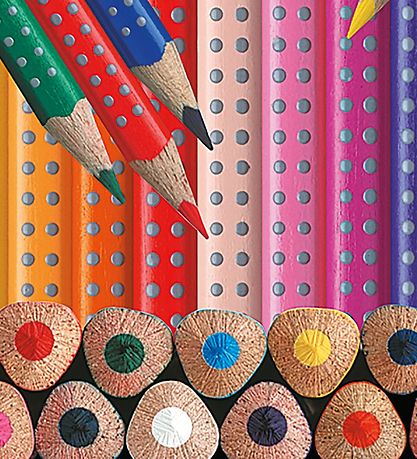 Les crayons de couleur Faber-Castell présentent une forme triangulaire ergonomique et des boutons latéraux classiques pour une bonne prise en main. Ces crayons de couleur aux couleurs éclatantes sont recouverts d'un cuir vernis écologique à base d'eau, qui les protège des fissures dues à la mine. Le bois provient d'arbres issus de forêts gérées durablement. Hydrosolubles, ils peuvent également être utilisés pour la peinture à l'eau. Ils sont livrés dans une boîte métallique pratique, facile à forfait et à transporter.