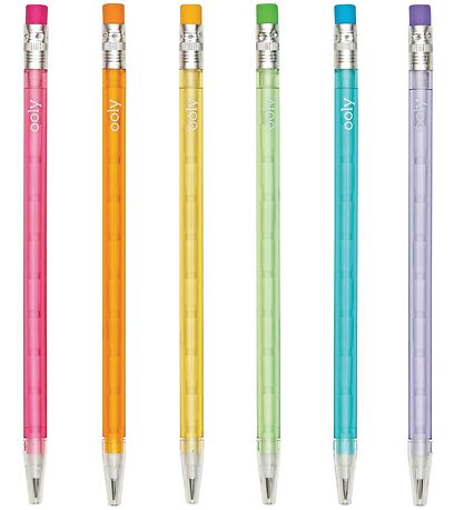 Jolis crayons Ooly, composés de six crayons de couleurs différentes.