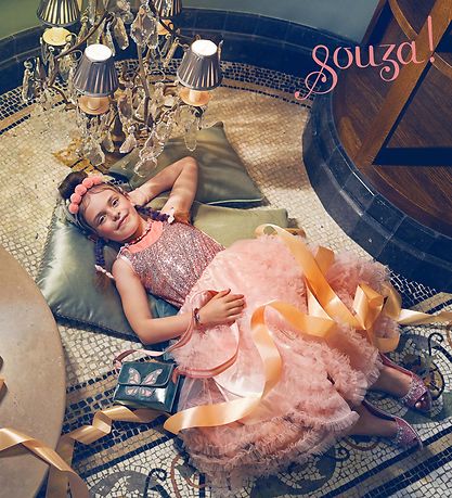 Belles chaussures Souza en rose avec un look métallique. Les chaussures ont de belles rose brillant ainsi que des perles et des strass sur une sangle sur les orteils. Les chaussures ont même un talon transparent avec de jolies roses à l'intérieur.
