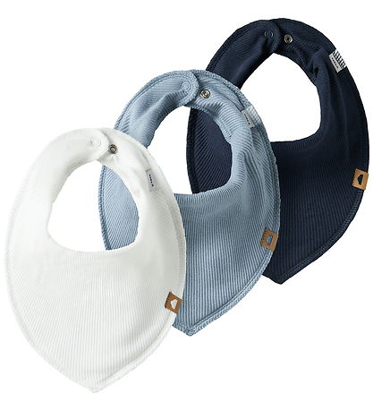 Les bavoirs Classic Name It sont vendus dans un 3 Pack, qui comprend un en blanc, un bleu clair cendré et un bleu marine.