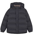 La veste en duvet se ferme par une fermeture éclair avec protège-menton et un double Éolienne, fermé par À boutons poussoirs dissimulés. Elle est dotée de poches latérales doublées de polaire. La veste est dotée d'une tissu lisse et d'une encolure doublée de polaire. Un imprimé réfléchissant rond orne le haut de la manche gauche. La veste est dotée d'un rembourrage chaud en polyester.