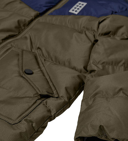 La LEGO® Wear est dotée d'une capuche amovible qui se ferme à mi-hauteur du col par À boutons poussoirs. Elle est dotée de bords élastiques de chaque côté de l'ouverture pour le visage. La couette s'ouvre sur le devant grâce à une fermeture éclair avec protège-menton et Éolienne intérieur. Sur le devant, la couette possède également deux poches à rabat avec boutons-pression.
