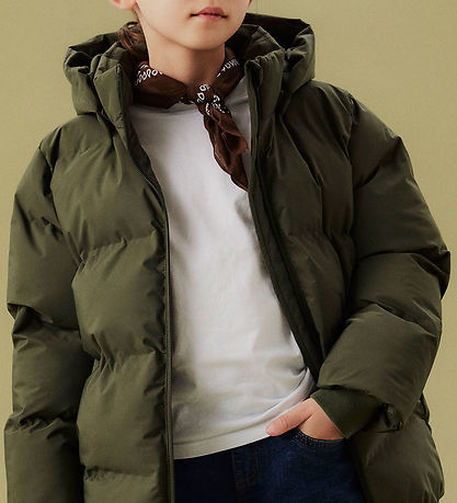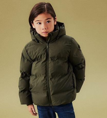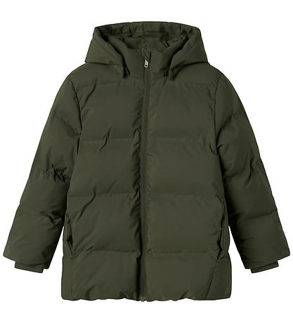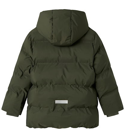 Magnifique doudoune Name It vert foncé avec une structure en relief à lignes horizontales. Elle est dotée de réflecteurs pratiques.