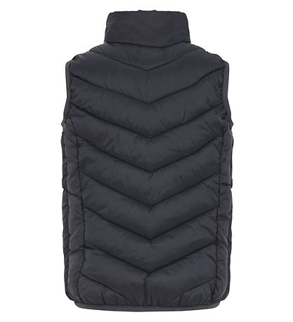 doudoune sans manches Lovely Color Kids en gris charbon foncé avec surpiqûres horizontales et un petit logo imprimé réfléchissant sur la poitrine gauche.