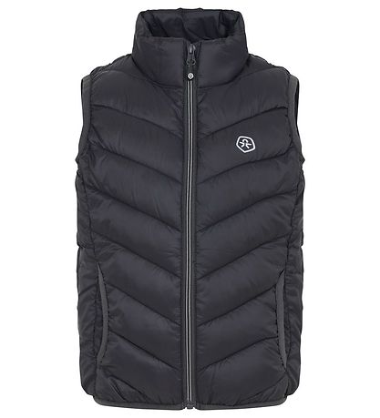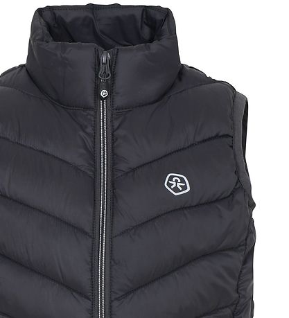 Le Color Kids a un col haut et des bords côtelés étroits au niveau des ouvertures de bras et de la taille. Le gilet matelassé s'ouvre sur le devant à l'aide d'une fermeture éclair avec protège-menton. Sur le devant, le gilet matelassé possède deux poches ouvertes, ainsi que deux poches intérieures.