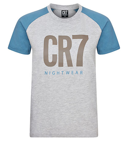- La chemise de nuit est gris chiné avec des manches bleues et avec un imprimé « CR7 Nightwear » sur le devant.