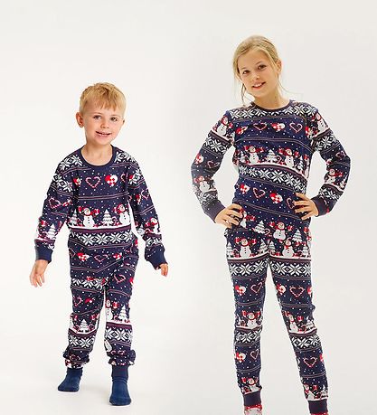 Modèle : Ensemble de pyjama Heart de Noël bleu marine Kids, style : 22ORGKP6.