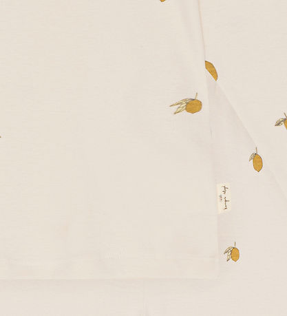 Magnifique ensemble de pyjama Konges Sløjd en ivoire blanc avec un imprimé de citrons. Ensemble se compose d'une chemise de nuit et d'une paire de bas de pyjama.