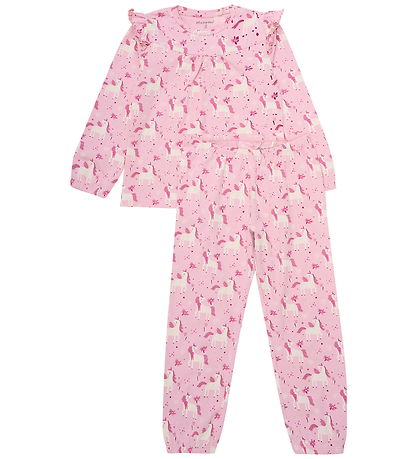 Charmant ensemble de pyjama Minymo à manches longues, décliné dans une ravissante teinte rose clair et orné d'un joli imprimé licornes dans des tons blancs. Ce Minymo ensemble de pyjama confort et design original.