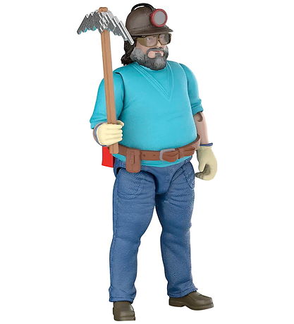 Superbe figurine Minecraft représentant « Steve » avec une barbe détaillée, des cheveux bruns, une chemise turquoise et un pantalon bleu. Elle comprend un chariot de mine et une pioche. Parfaite pour les fans du jeu emblématique.