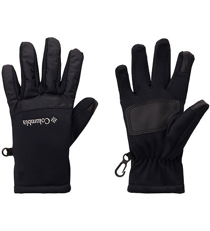 Jolis gants Columbia noirs de couleur unie. Un logo gris brodé orne le dos de la main.