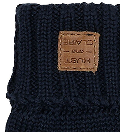 Magnifiques gants Hust and Claire en tricot de laine bleu marine. Gants sont ornés d'un petit logo appliqué.