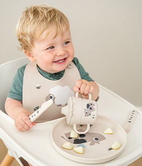 Équipez-vous et votre famille pour votre bien et celui de votre tout-petit. Trouvez par ex. set de dîner pour la table à manger avec la table à manger avec un set d' assiettes, de tasses et de couvert ou des boîtes à repas et des gourdes de Sistema.