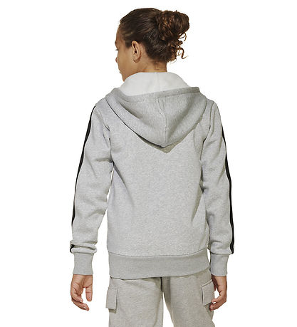 Joli gilet adidas Performance gris chiné avec a rayures adidas noir sur les manches et un logo brodé sur le côté gauche de la Gilet. Gilet est doté d'une capuche intégrée et d'une fermeture éclair sur toute la longueur. Il est doté d'une poche fendue au genou et de larges bords côtelés aux manches et à la taille. L'intérieur est en coton brossé doux.