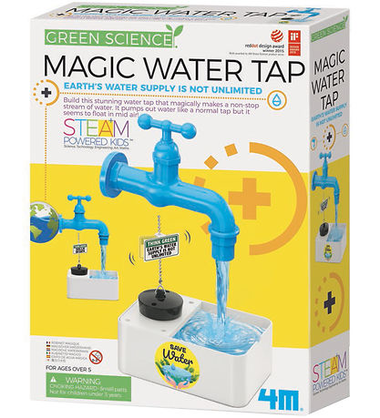 Le 4M est amusant et éducatif pour les plus petits, car ils doivent le construire eux-mêmes et assembler l'électronique. Une fois construit, le robinet pompe l'eau comme par magie en continu, même s'il n'est pas connecté à une alimentation en eau. Vous pouvez par ex. placez le robinet contre un aquarium ou un mur, pour un effet amusant.