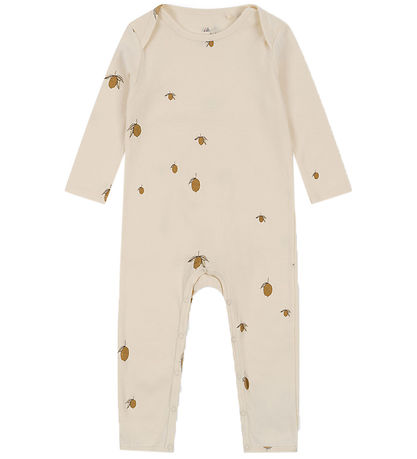 Joli grenouillère Konges Sløjd de ivoire blanc avec un imprimé de citrons.